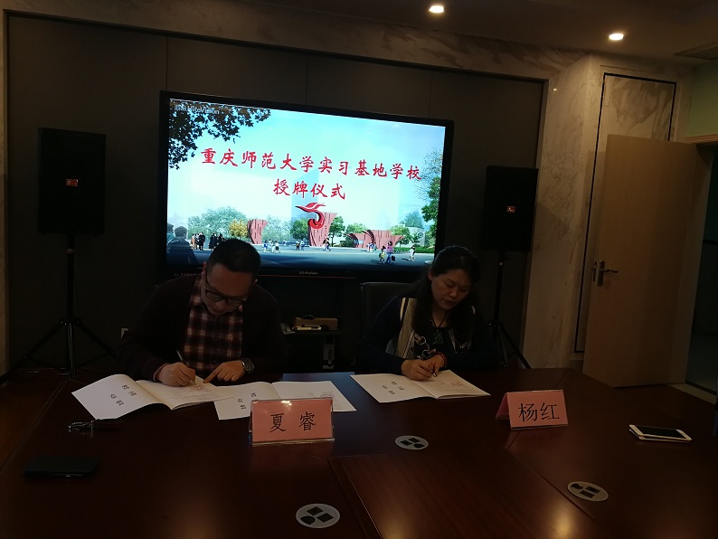 随后,学校教务处夏睿副处长与凤鸣山小学杨红校长共同签署了重庆师范大学实践教学基地协议,并为基地揭牌。